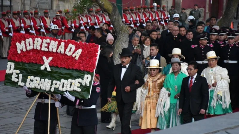 Las máximas autoridades del país se dieron cita en este homenaje cargado de simbolismo. El presidente del Estado, Luis Arce, encabezó la ceremonia junto al vicepresidente David Choquehuanca, el gobernador Santos Quispe y representantes de los tres niveles del Estado, así como delegaciones institucionales.